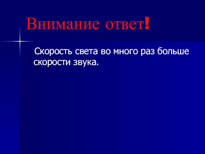 Внимание ответ!  Скорость света во много раз больше скорости звука.