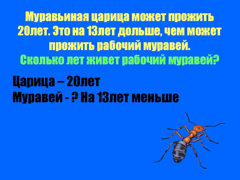 Муравей - ? На 13лет меньше