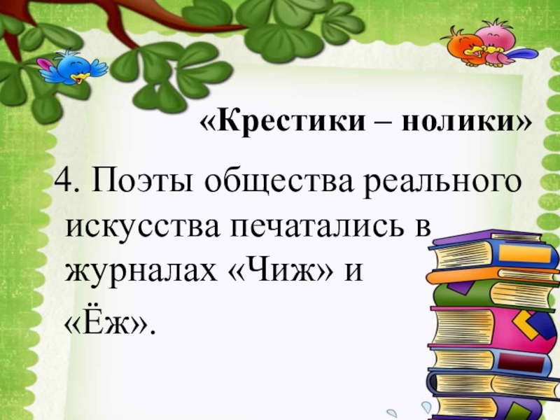 «Крестики – нолики»4. Поэты общества реального искусства печатались в журналах «Чиж» и «Ёж».