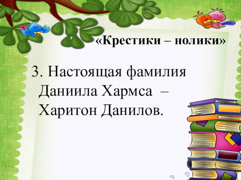«Крестики – нолики»3. Настоящая фамилия Даниила Хармса – Харитон Данилов.