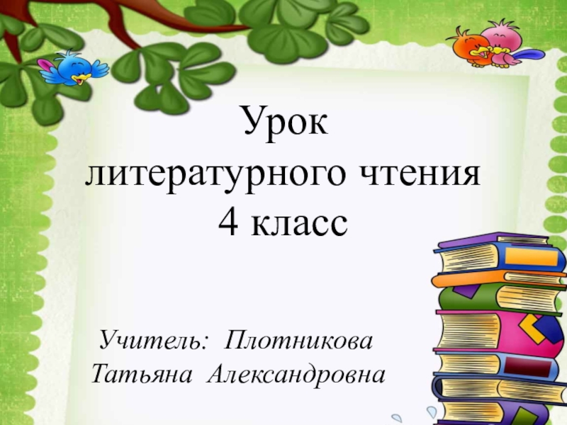 Урок  литературного чтения 4 класс  Учитель: Плотникова  Татьяна Александровна
