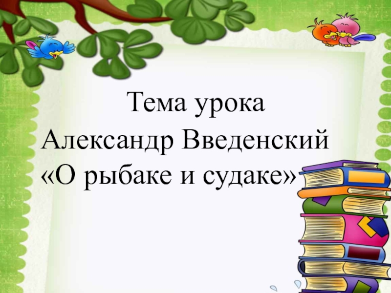 Тема урокаАлександр Введенский«О рыбаке и судаке»