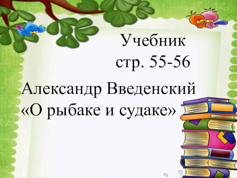 Учебник  стр. 55-56Александр Введенский«О рыбаке и судаке»
