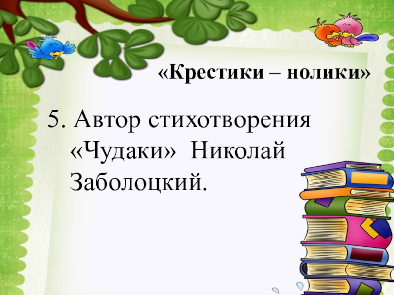 «Крестики – нолики»5. Автор стихотворения «Чудаки» Николай Заболоцкий.