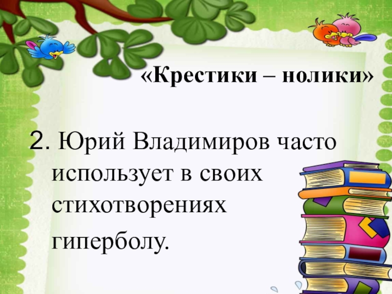 «Крестики – нолики» Юрий Владимиров часто использует в своих стихотворениях гиперболу.