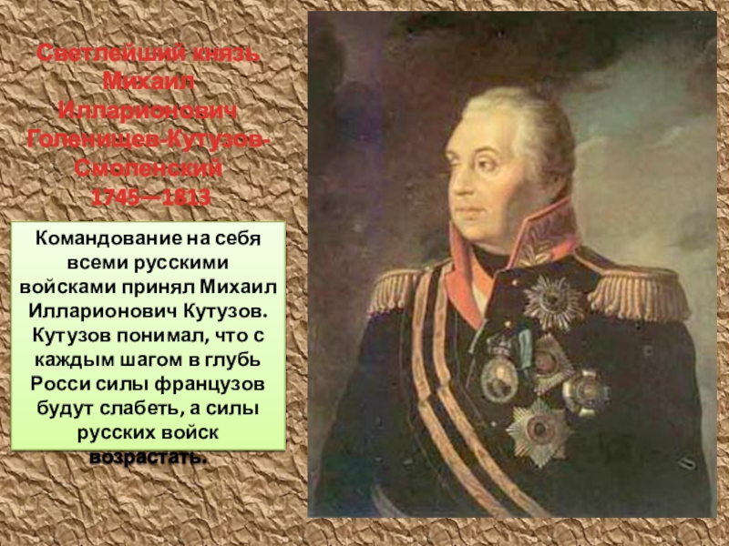 Светлейший князь Михаил Илларионович Голенищев-Кутузов-Смоленский