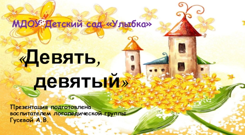 МДОУ Детский сад «Улыбка»«Девять,	 девятый»Презентация подготовлена воспитателем логопедической группыГусевой А.В.
