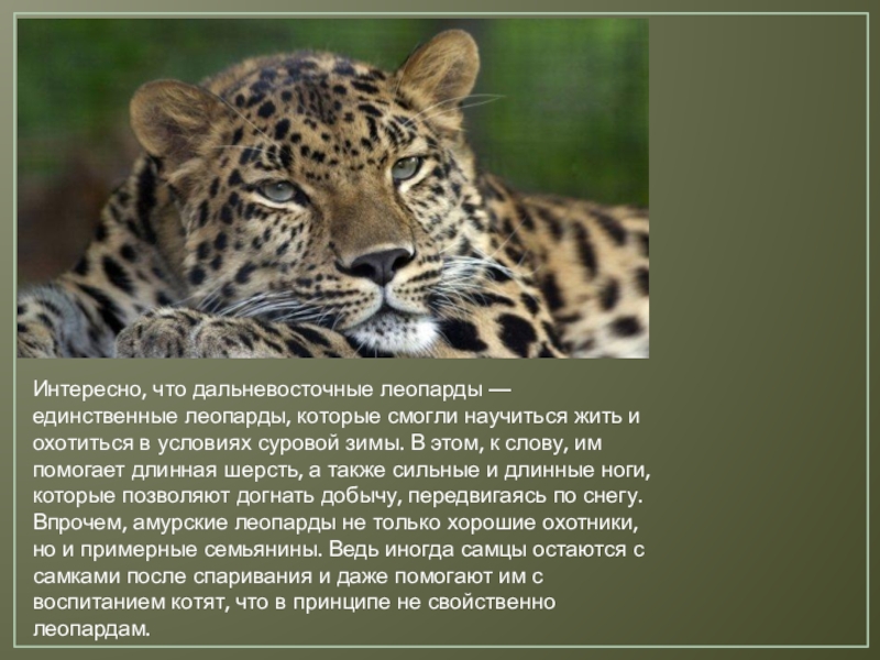 Слайд 20Интересно, что дальневосточные леопарды — единственные леопарды, которые смогли научиться жить