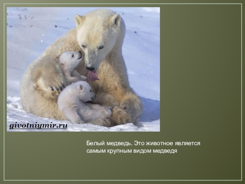 Слайд 16Белый медведь. Это животное является самым крупным видом медведя