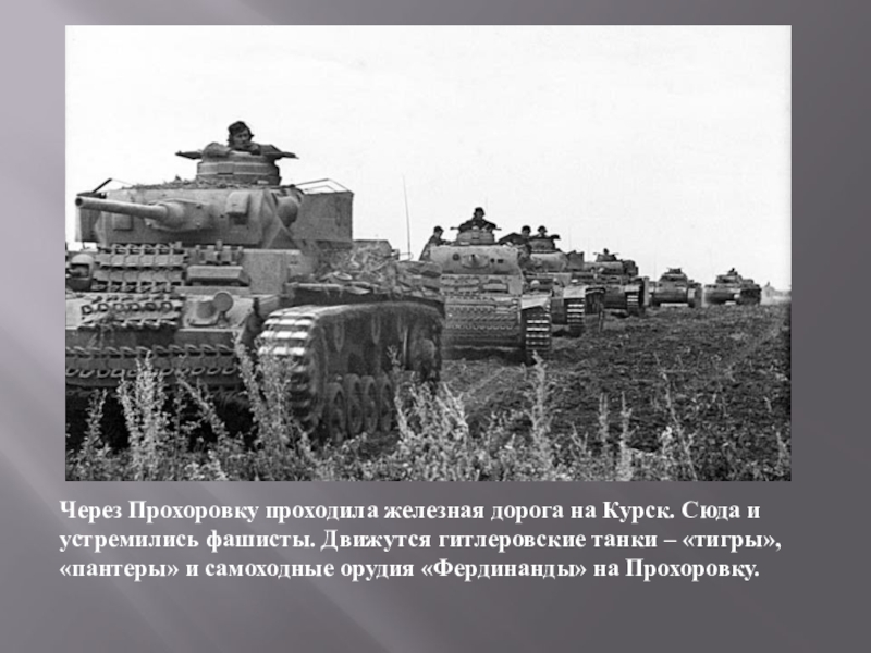 Слайд 7Через Прохоровку проходила железная дорога на Курск. Сюда и устремились фашисты.