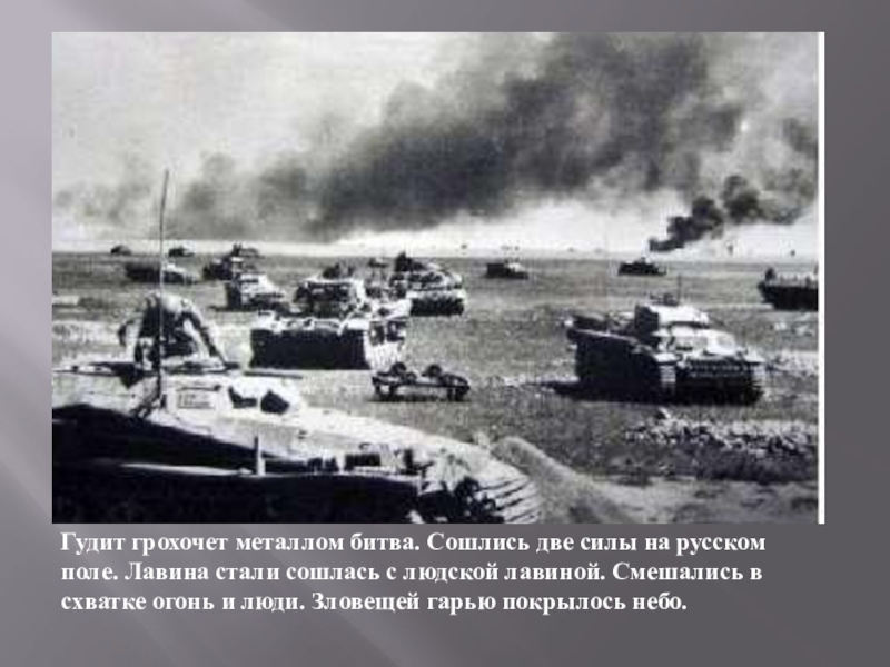 Слайд 5Гудит грохочет металлом битва. Сошлись две силы на русском поле. Лавина