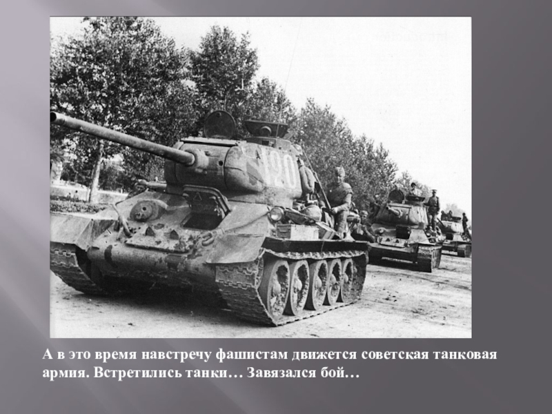 Слайд 8А в это время навстречу фашистам движется советская танковая армия. Встретились