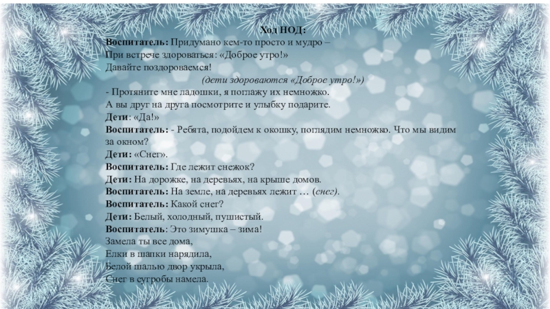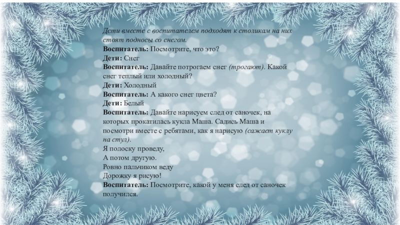 своем подносе со снегом, а воспитатель читает стихотворение)