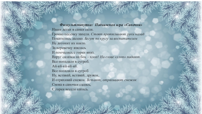Слайд 7Физкультминутка: Подвижная игра «Саночки»