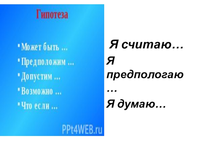 Презентация, доклад на тему Конспект с презентацией Я предпологаю. Гипотеза