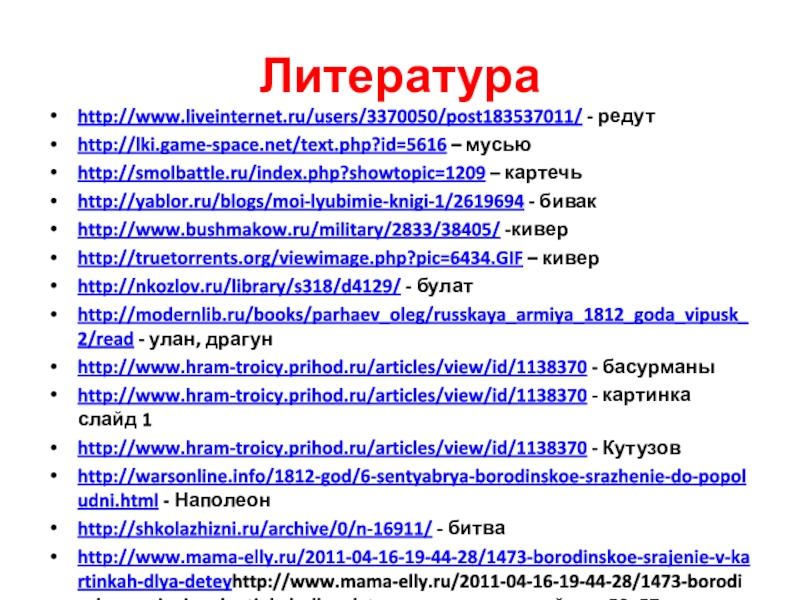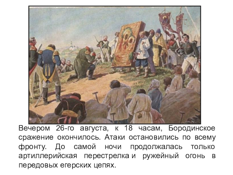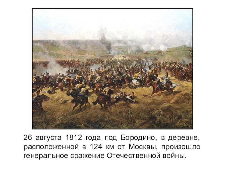 Бородинское сражение во время этой войны – самое кровопролитное однодневное сражение в мировой истории. Бородинское потому что проходило возле села Бородино