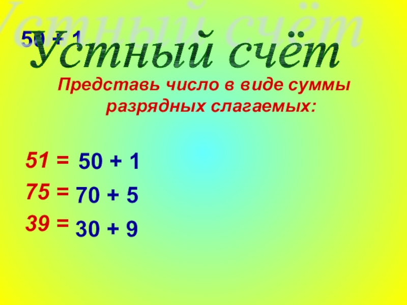1 шаг: заменим двузначное число суммой разрядных слагаемых