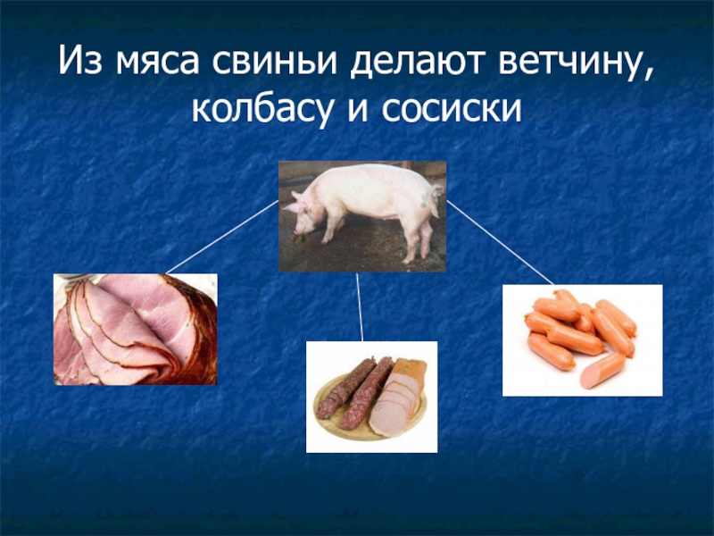 Из мяса свиньи делают ветчину, колбасу и сосиски