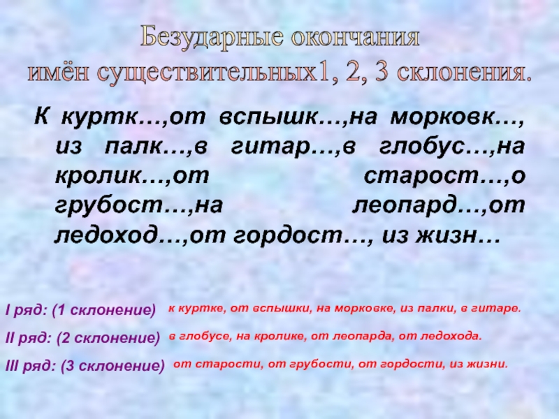 имён существительных1, 2, 3 склонения.