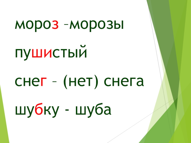 Слайд 6мороз –морозы пушистый снег – (нет) снега шубку - шуба