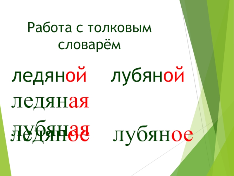 Работа с толковым словарёмледяной  лубянойледяная  лубянаяледяное  лубяное