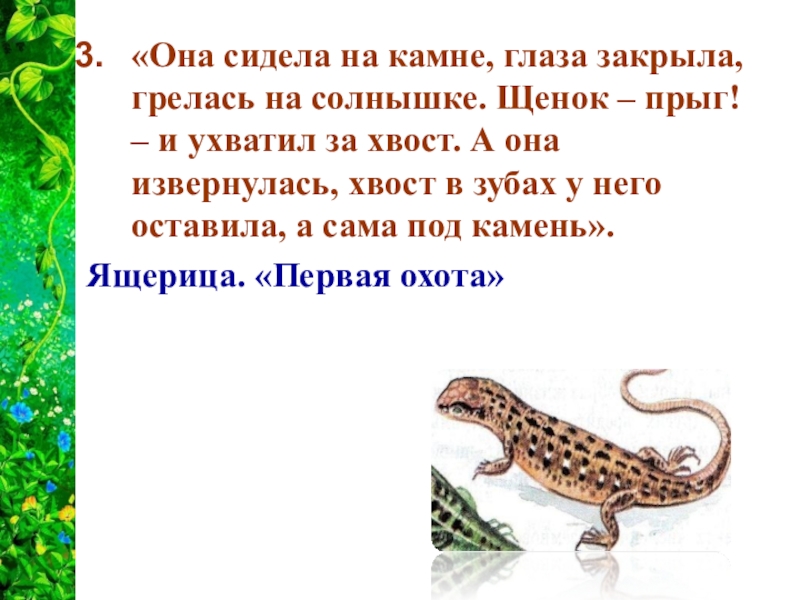 Слайд 24«Она сидела на камне, глаза закрыла, грелась на солнышке. Щенок –