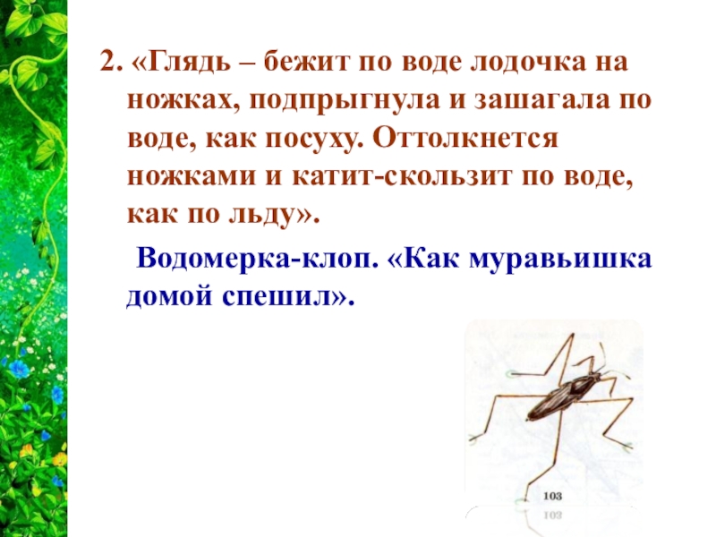 Водомерка-клоп. «Как муравьишка домой спешил».