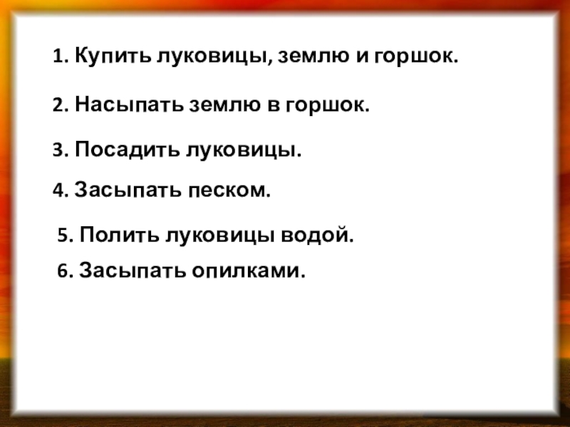 6. Засыпать опилками.