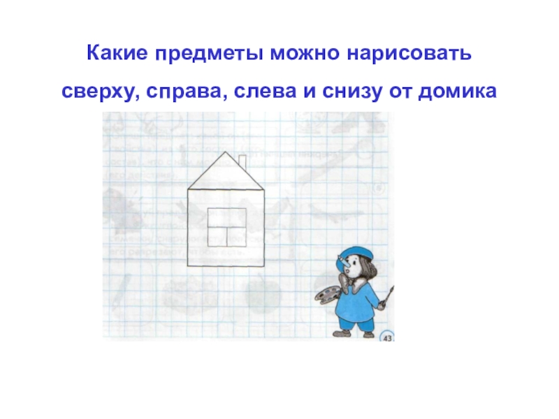Слайд 7Какие предметы можно нарисовать сверху, справа, слева и снизу от