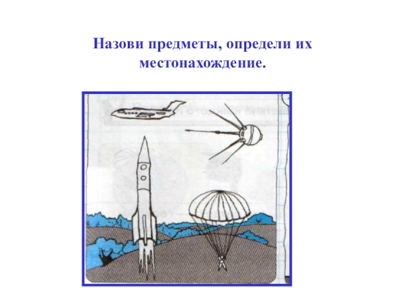 Слайд 6Назови предметы, определи их местонахождение.