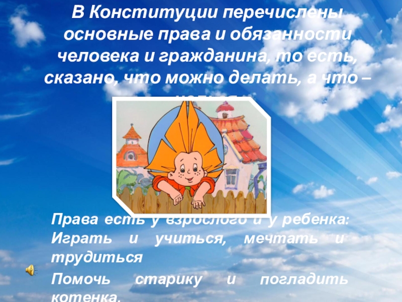 Права есть у взрослого и у ребенка: Играть и учиться, мечтать и трудиться