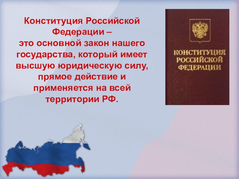 высшую юридическую силу, прямое действие и применяется на всей территории РФ.