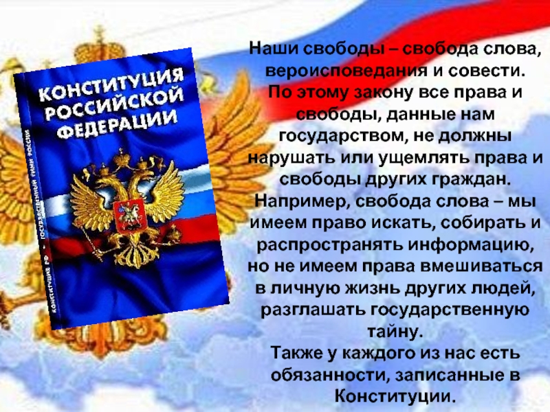 Слайд 11В Конституции РФ записаны наши права, свободы и обязанности.