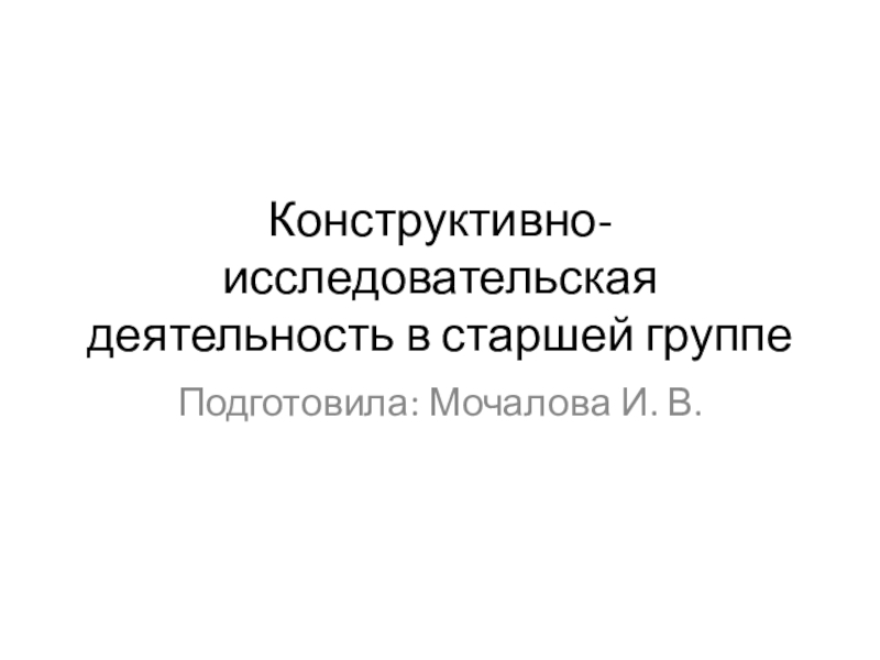 Конструктивно-исследовательская деятельность в старшей группе Подготовила: Мочалова И. В.