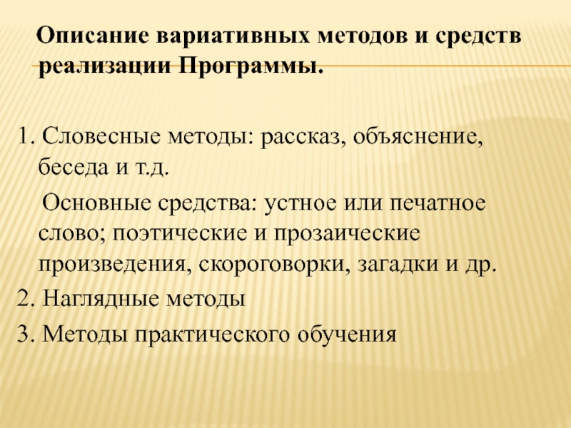 Слайд 11 Описание вариативных методов и средств реализации Программы.