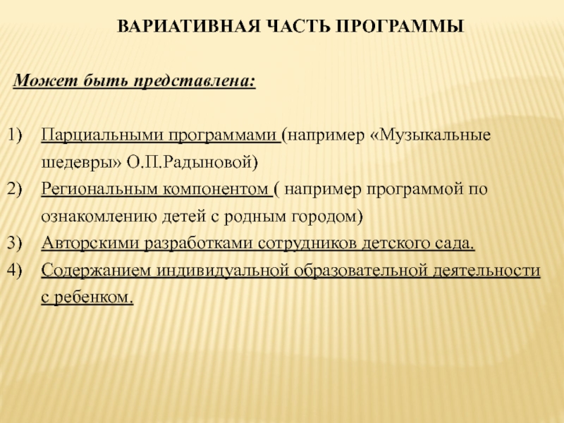 Слайд 4 ВАРИАТИВНАЯ ЧАСТЬ ПРОГРАММЫ