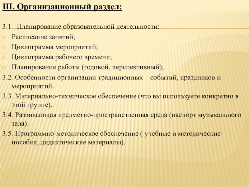 Слайд 12III. Организационный раздел: