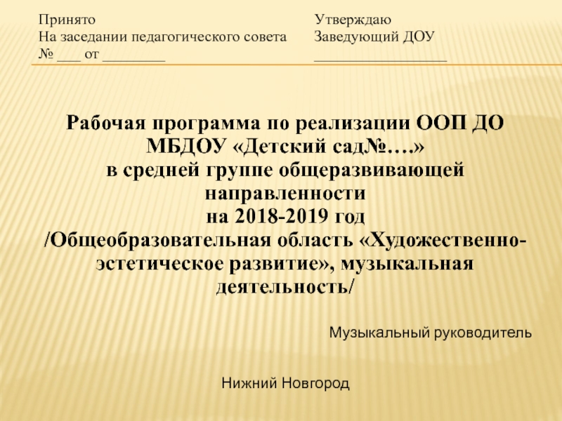 сведения о согласовании и утверждении документа руководителем ДОО (грифы «Согласовано» (дата, N протокола) и «Утверждаю»);