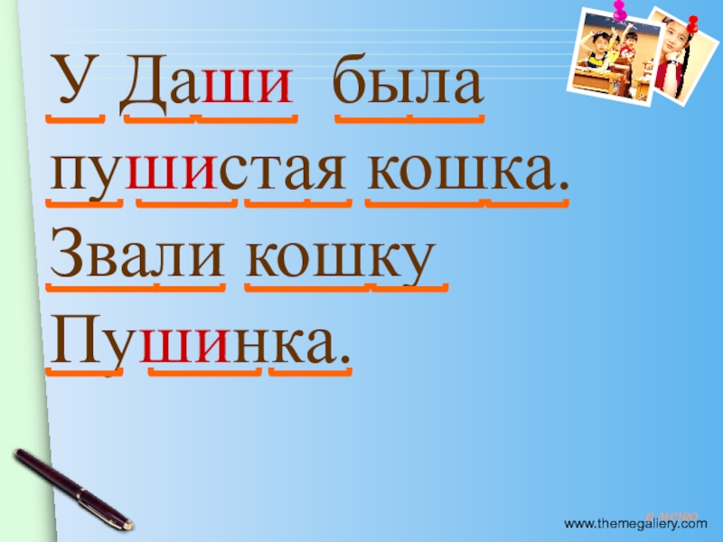 Слайд 51У Даши была пушистая кошка. Звали кошку Пушинка.