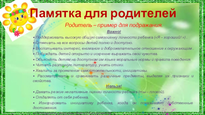 Слайд 12Памятка для родителей