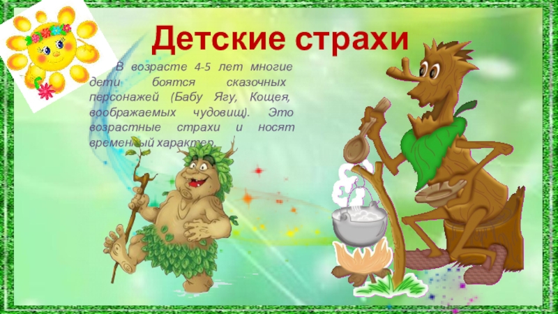 (Бабу Ягу, Кощея, воображаемых чудовищ). Это возрастные страхи и носят временный характер.