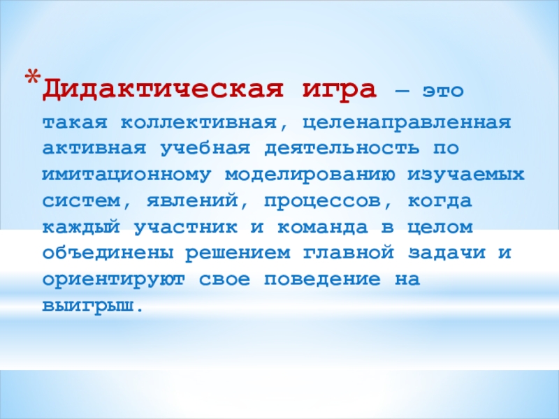 Слайд 8Дидактическая игра — это такая коллективная, целенаправленная активная учебная деятельность по