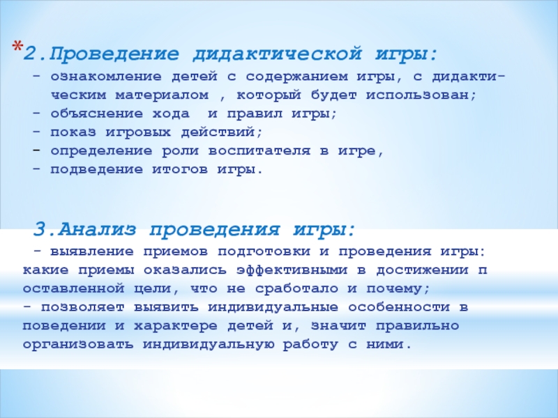 содержанием и последовательностью действий. Взрослый исполняет активную роль.