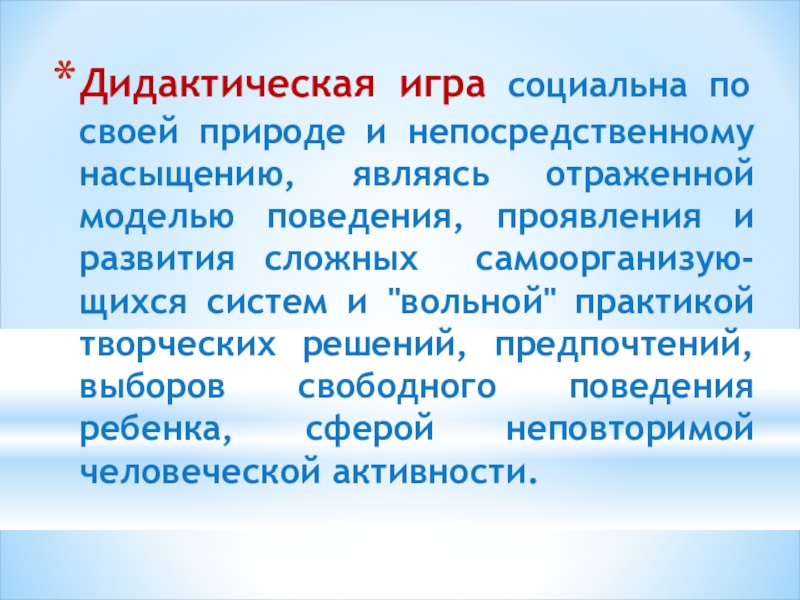 Слайд 21Дидактическая игра социальна по своей природе и непосредственному насыщению, являясь отраженной