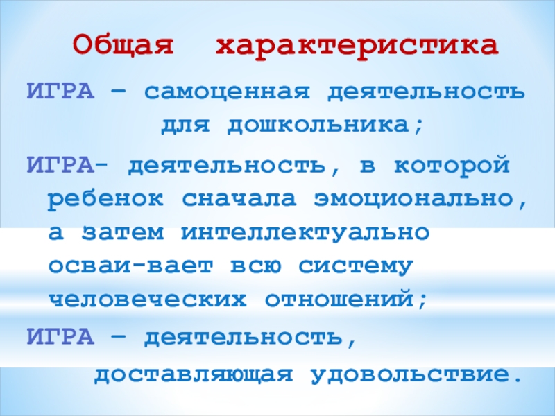 деятельность, в которой ребенок сначала эмоционально, а затем интеллектуально осваи-вает всю систему человеческих отношений;