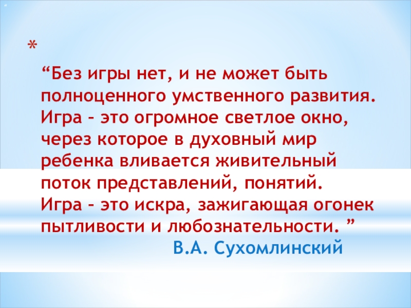Игра – это искра, зажигающая огонек пытливости и любознательности. ”