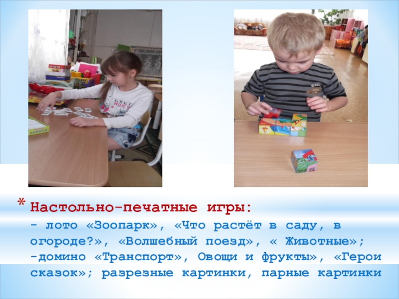 - лото «Зоопарк», «Что растёт в саду, в огороде?», «Волшебный