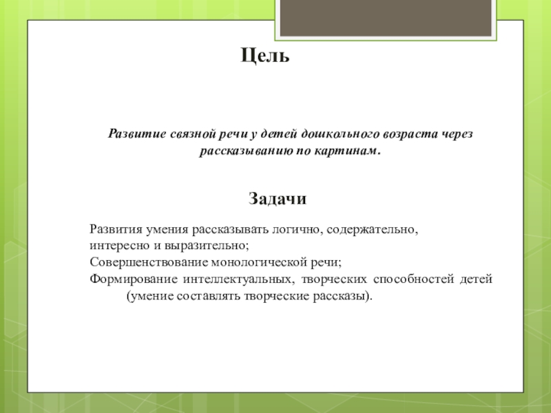 Формирование интеллектуальных, творческих способностей детей (умение составлять творческие рассказы).