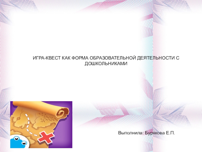ИГРА-КВЕСТ КАК ФОРМА ОБРАЗОВАТЕЛЬНОЙ ДЕЯТЕЛЬНОСТИ С ДОШКОЛЬНИКАМИВыполнила: Бурякова Е.П.