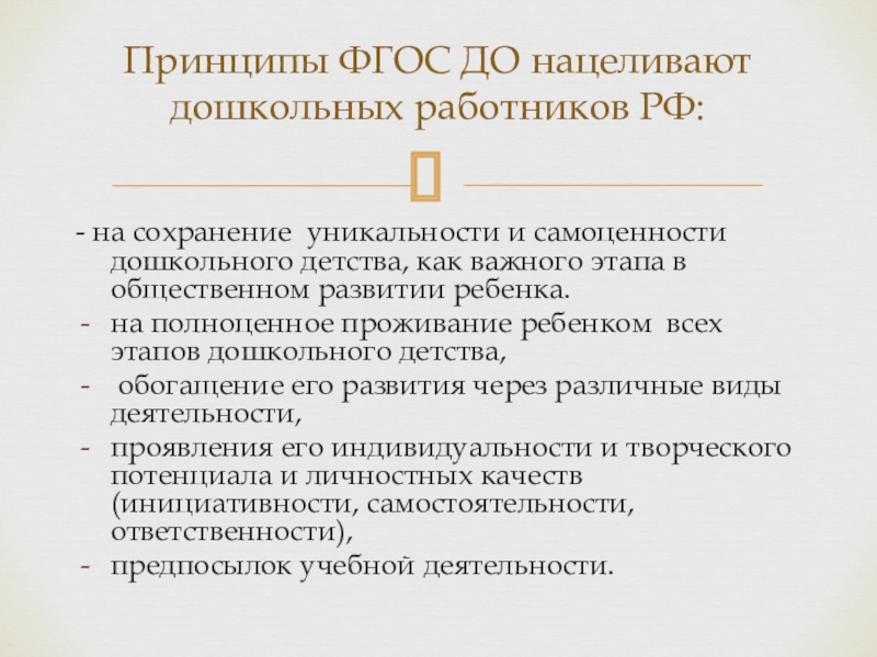 Принципы ФГОС ДО нацеливают дошкольных работников РФ: